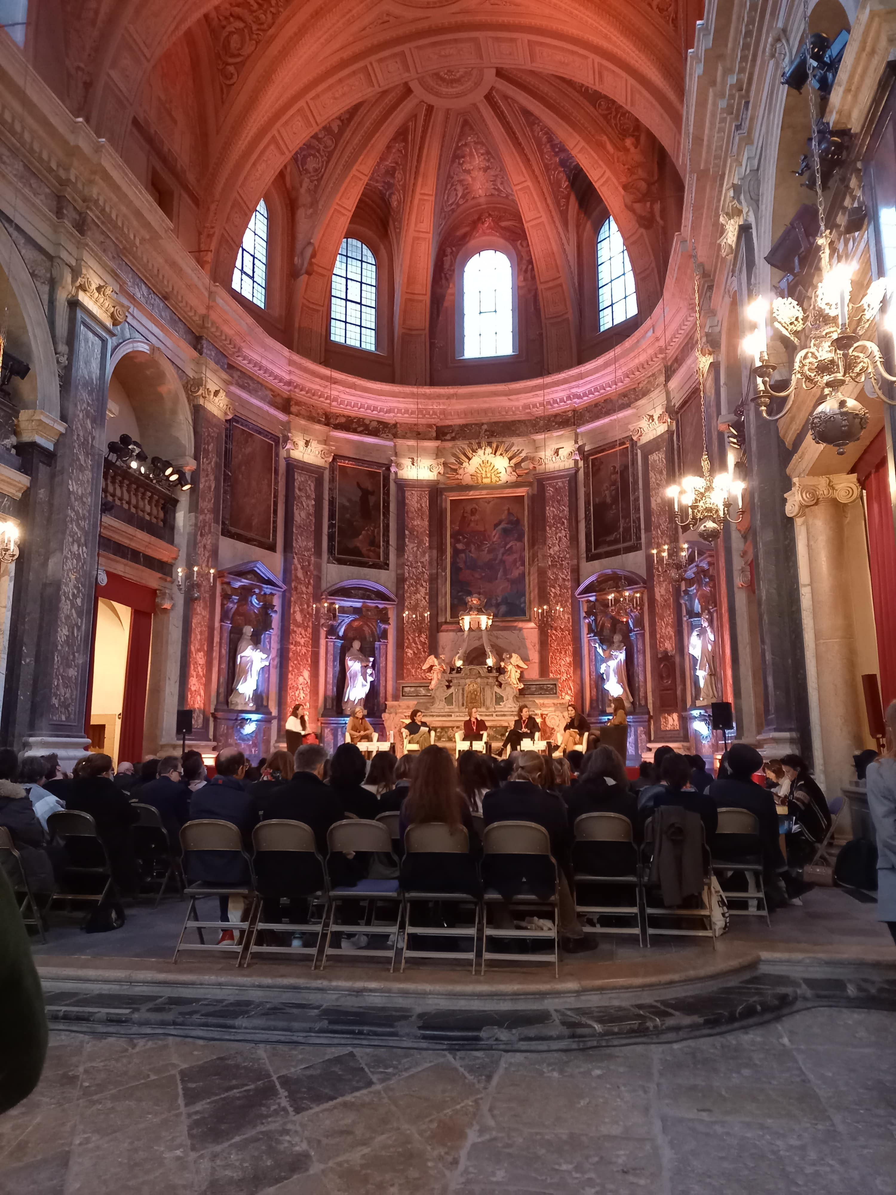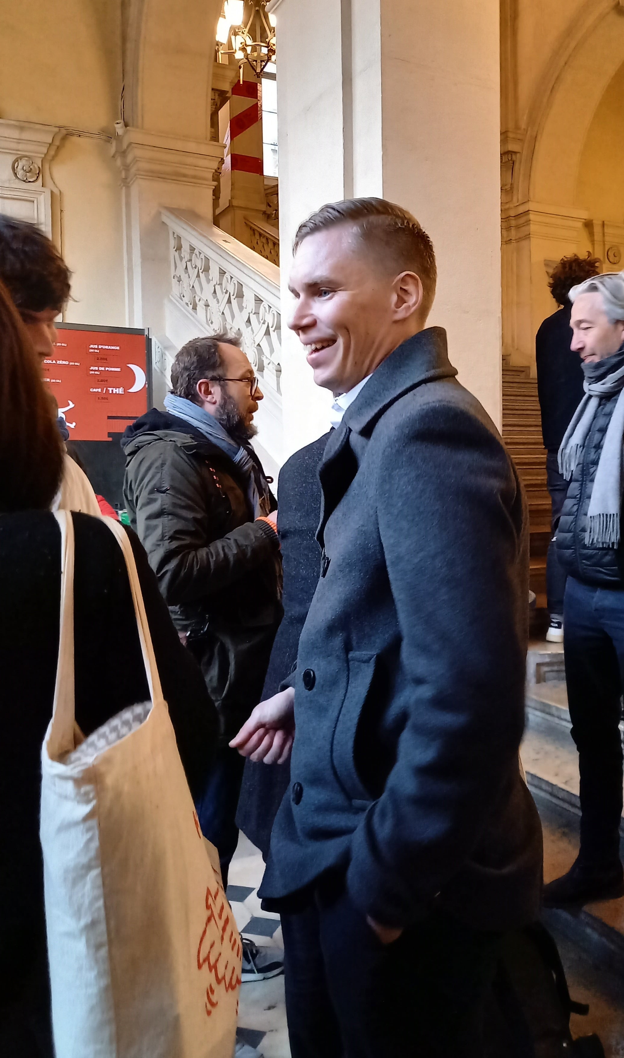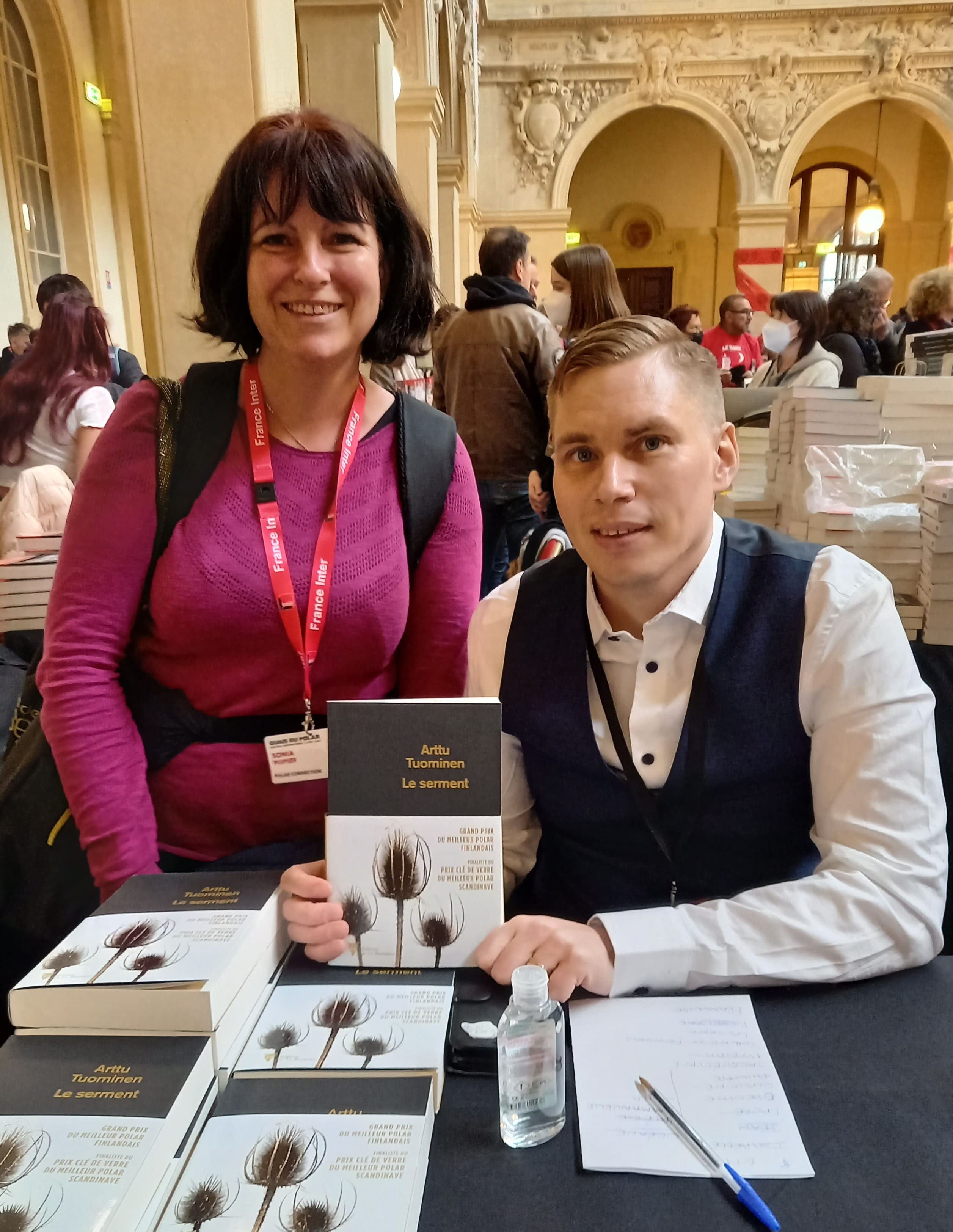 En route pour la Chapelle de la Trinité, pour la remise du prix Polar en série et pour un cocktail déjeunatoire. Le prix a été décerné à Noémie Adenis pour son premier roman, « Le loup des ardents », publié chez Robert Laffont, que l’on peut voir sur la photo de droite, avec Glenn Tavennec, son éditeur.