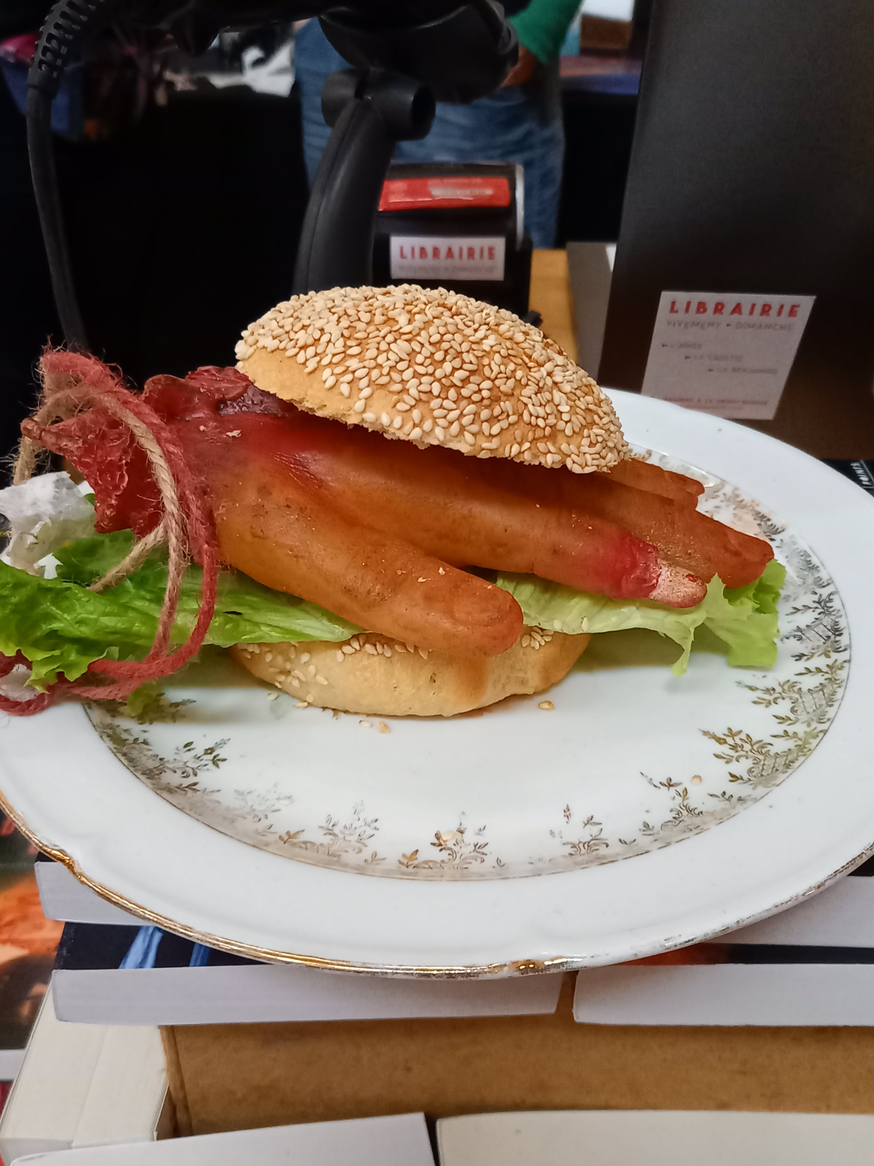 Un petit creux ? Voilà un burger qui donne envie non ? Ne me demandez pas qui a fait don de sa main, je l’ignore lol.