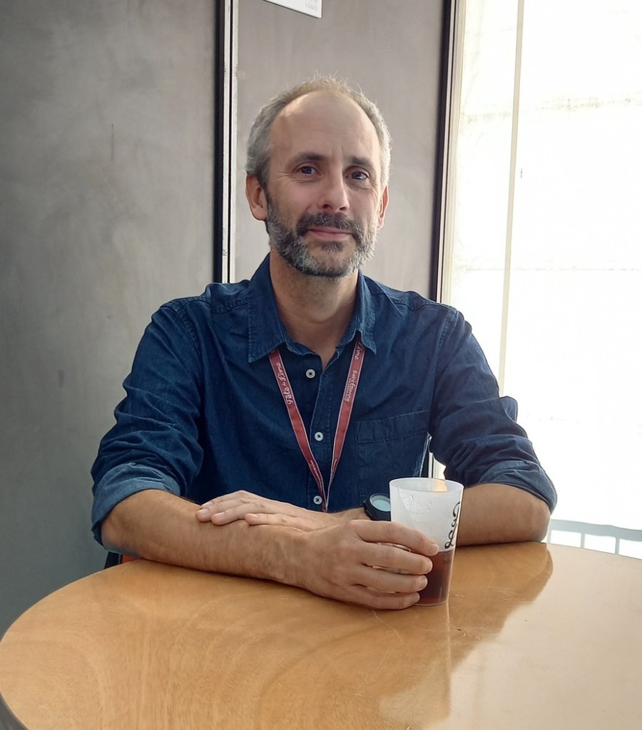 Je passe au village des éditeurs, cette fois, Jean-Louis Nogaro, des Éditions du Caïman est là, l’occasion de faire une petite photo.