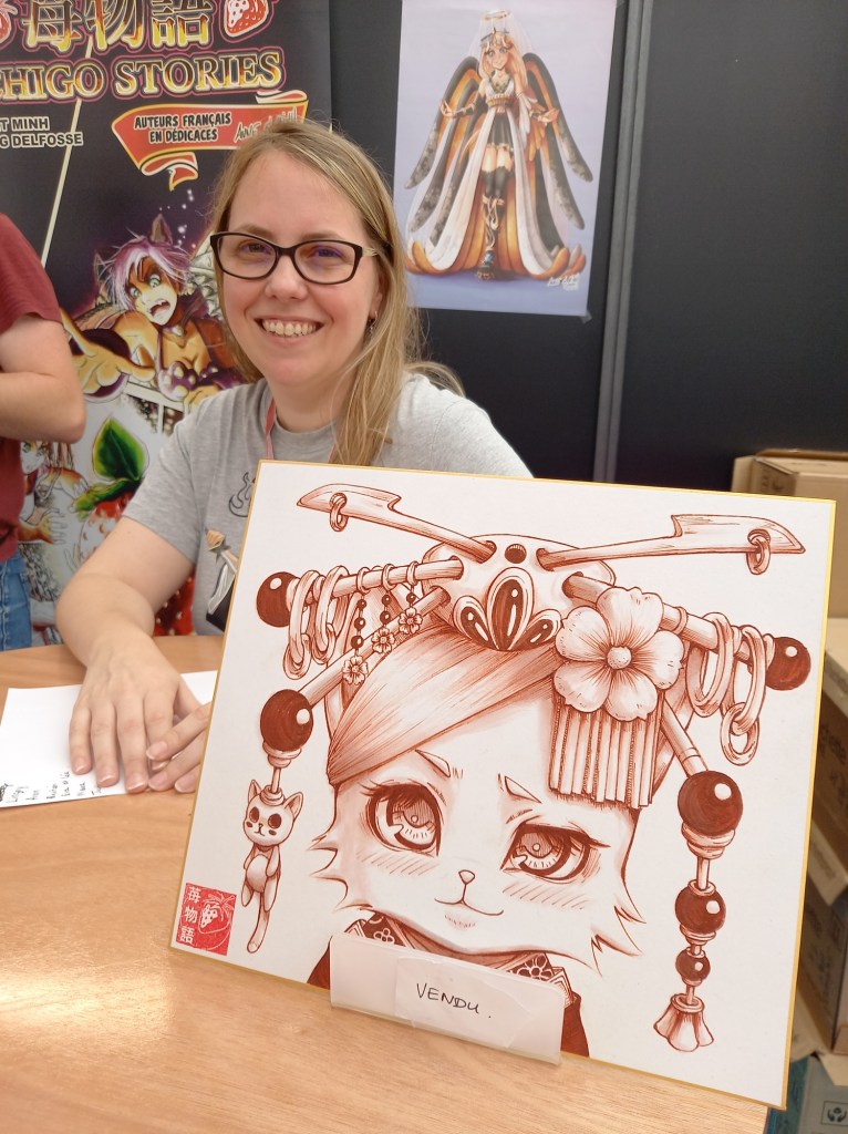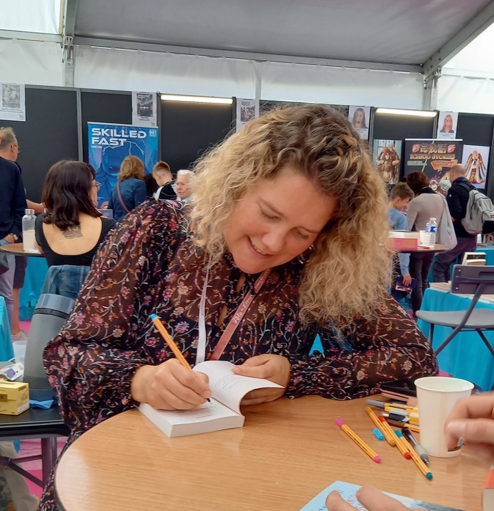 Ah, Valentine Gobi est là ! J’en profite pour choper l’un de ses livres et le lui faire dédicacer.