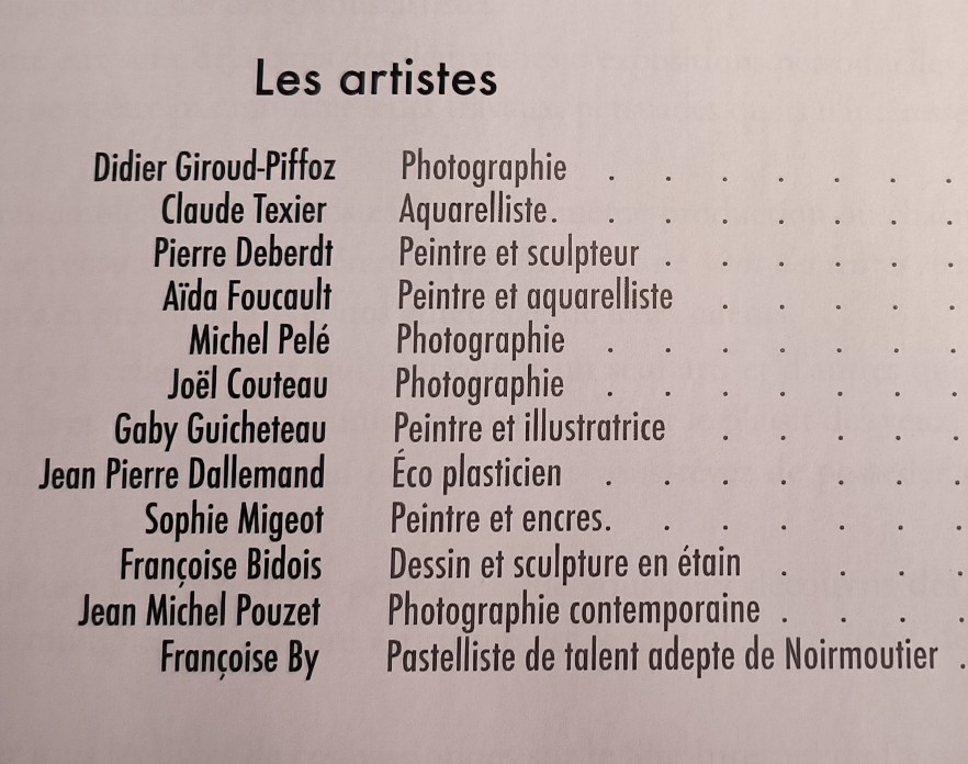 Dans la team des aquarellistes et peintres, j’ai nommé Claude Texier. Aïda Foucault partage avec nous certains tableaux enchanteurs représentant la Bretagne. Françoise Bidois est poète et illustratrice. Françoise By, pastelliste, Gaby Guicheteau, illustratrice, s’adonne à l’aquarelle ou encore à la peinture à l’huile.