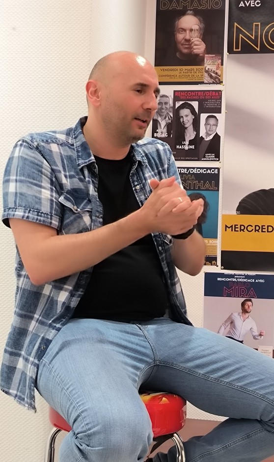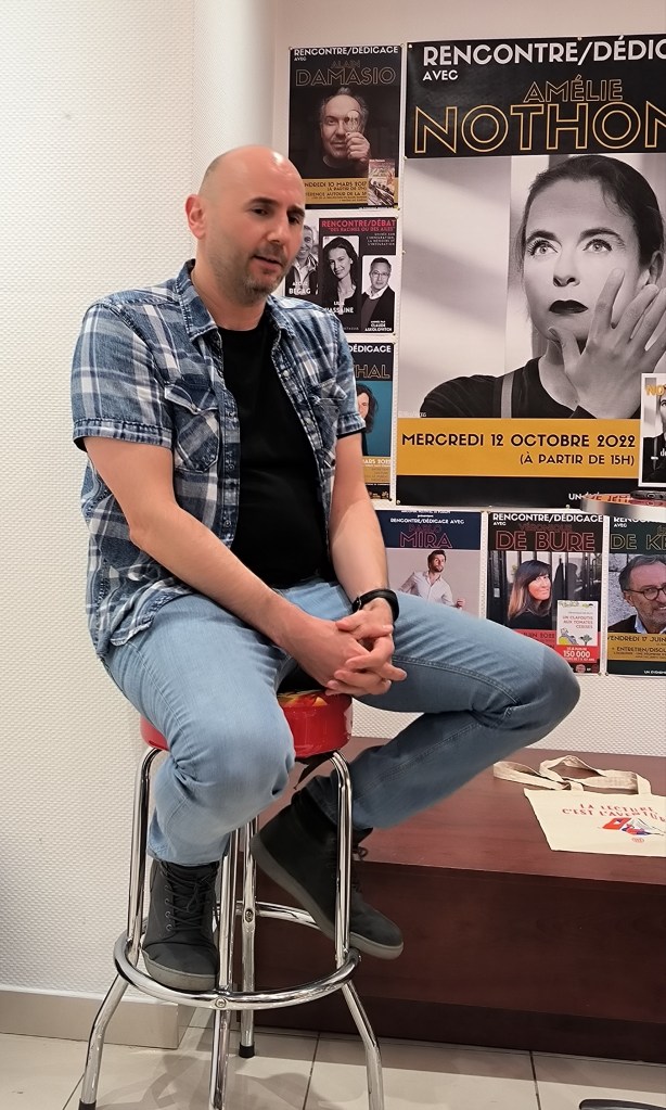 Une fois la séance de dédicace terminée, nous avons pu profiter d’un moment convivial et privilégié avec Ivan, qui s’est prêté au jeu de l’interview sous les questions de Raphaël, notre libraire spécialisé polar, et en présence de l’éditrice d’Ivan, Marie Eugène.