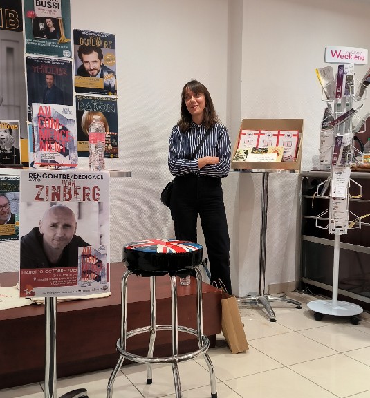 La dédicace bat son plein, les lecteurs sont au rendez-vous, c’est chouette. Dans la file d’attente, je papote avec ma copine blogueuse, Isabelle, @labelettestephanoise.