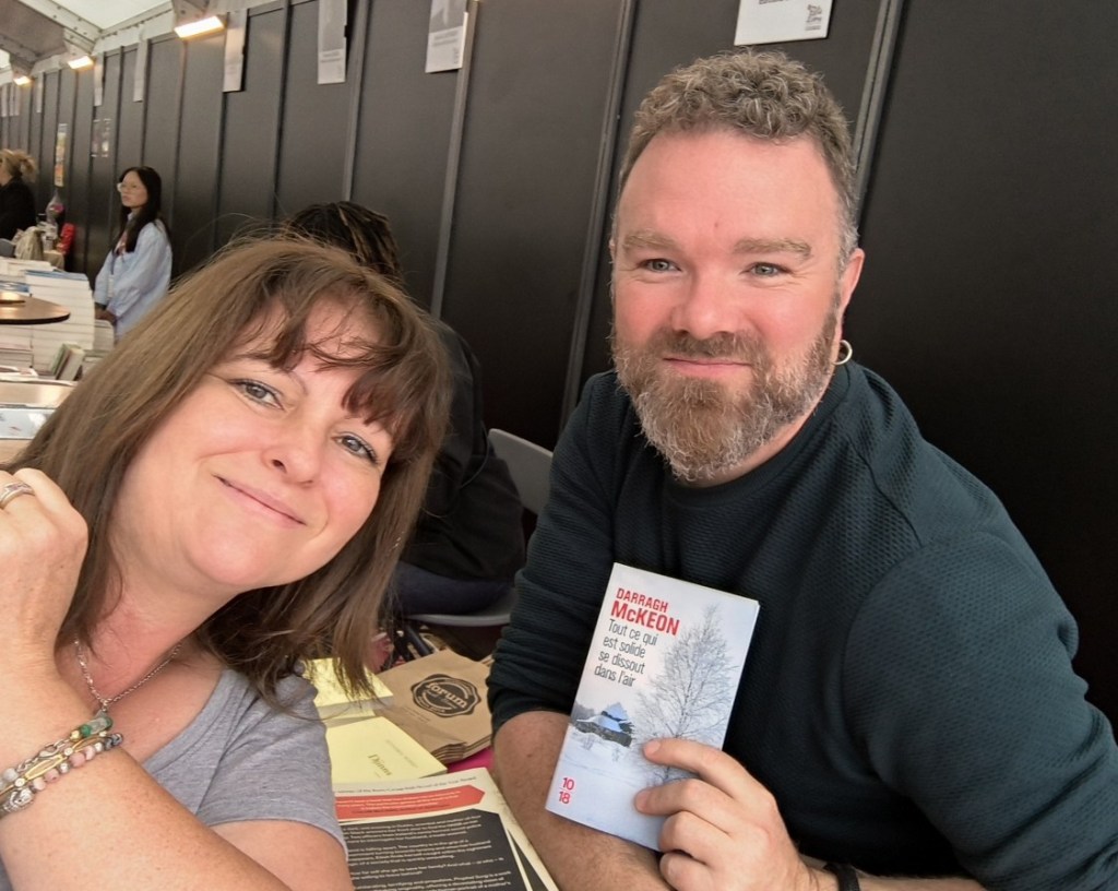 Daragh McKeon est arrivé, ouf ! L’occasion de baragouiner en anglais, l’auteur irlandais ne parlant pas français. Je lui ai acheté son premier roman, « Tout ce qui est solide se dissout dans l’air ». Il traite d’un sujet qui m’intéresse beaucoup : celui de l’accident de Tchernobyl.