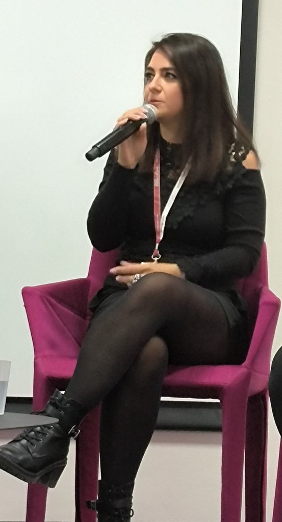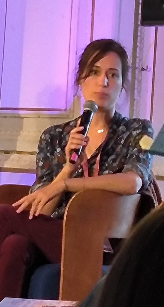 Maran Hrachyan, très souriante. Découverte hier soir, puisqu’elle a été récompensée par le prix de la bande dessinée, et à la conférence de ce matin.