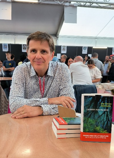 Laurent Petimangin, lauréat hier du prix de la Littérature. Le résumé de son roman me tente bien, je pense craquer…Pour le moment, je passe devant l’auteur, je le prends en photo, et je trace, lol. Je laisse ma carte bleue croire qu’elle a fini de travailler…