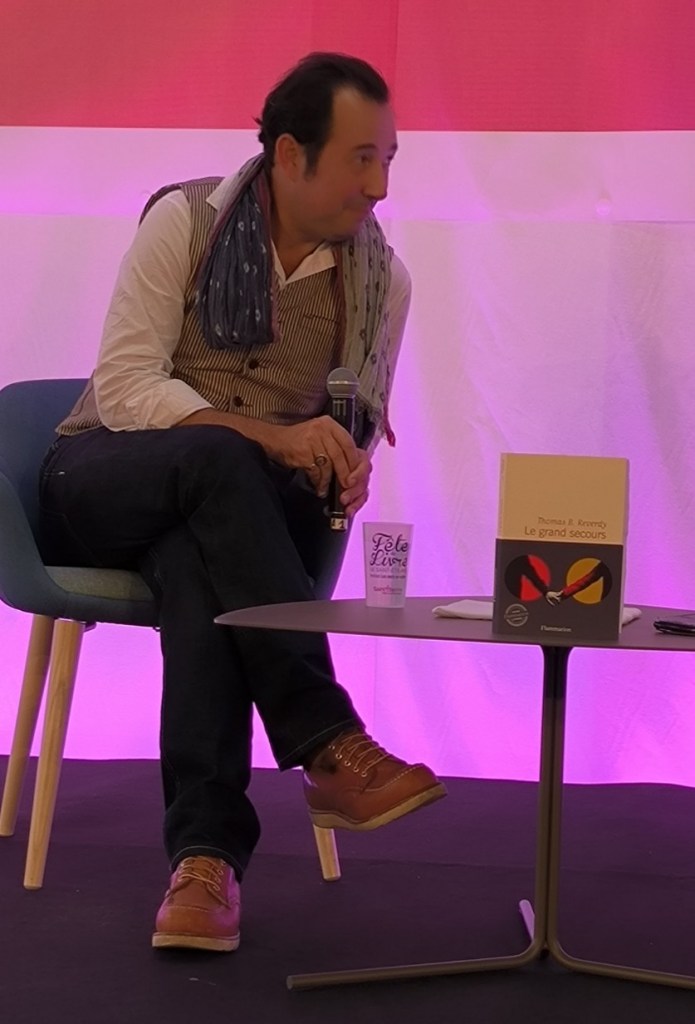 Timing parfait pour enchaîner sur l’interview de l’auteur. Son dernier roman, « Le grand secours », traite des émeutes et d’un lycée ; Thomas étant lui-même enseignant, et vu le drame qui s’est passé la veille à Arras, inutile de vous dire que cet échange était plus que chargé en émotions.
