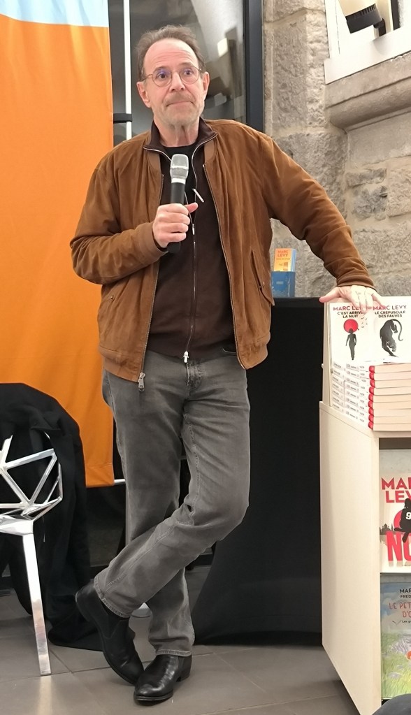 J’avais déjà vu Marc Levy au salon de Vannes en 2018, mais il avait beaucoup de monde et je n’avais pas eu le courage d’attendre. J’étais donc impatiente de le voir dans un lieu plus cocooning qu’un salon littéraire et d’obtenir une dédicace !