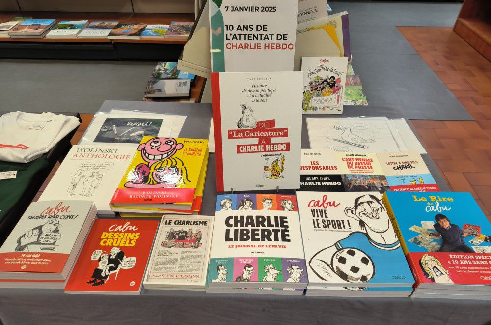 Une table est dédiée à Charlie Hebdo afin de rendre hommage aux victimes de l’attentat du 7 janvier 2015. Dix ans déjà….
