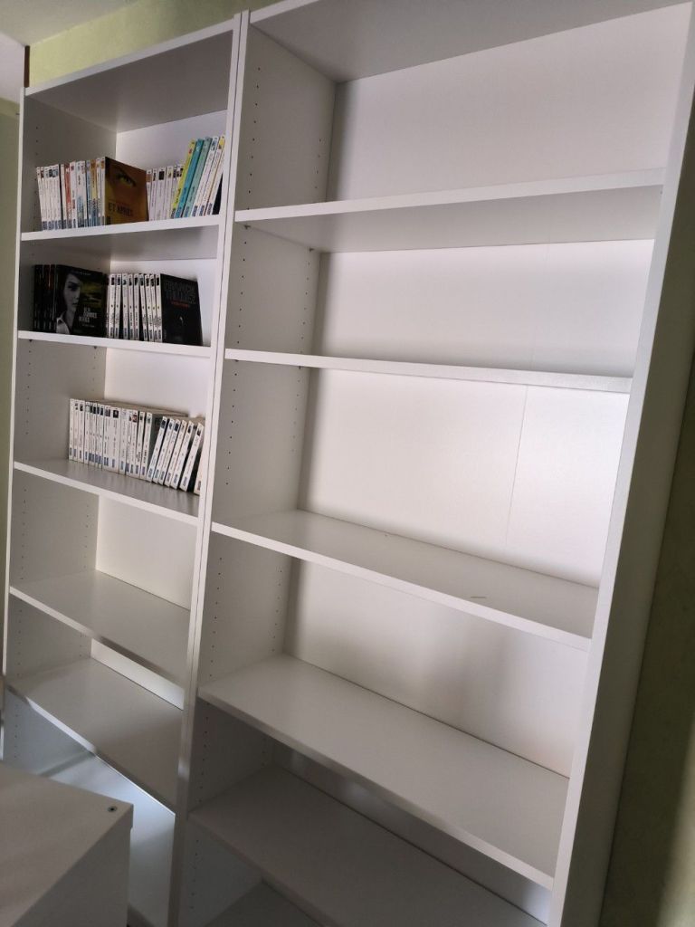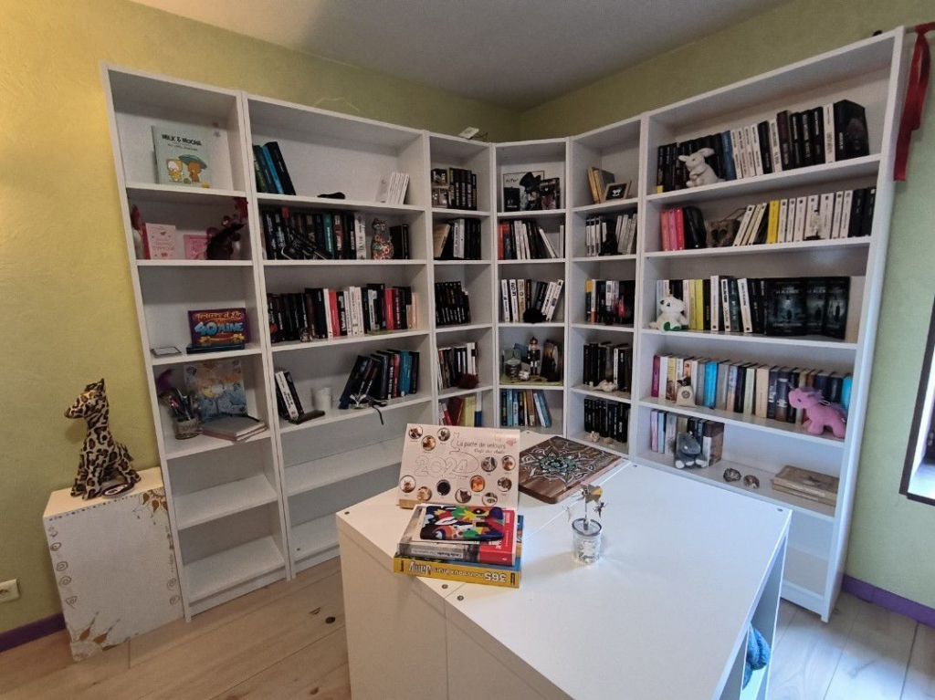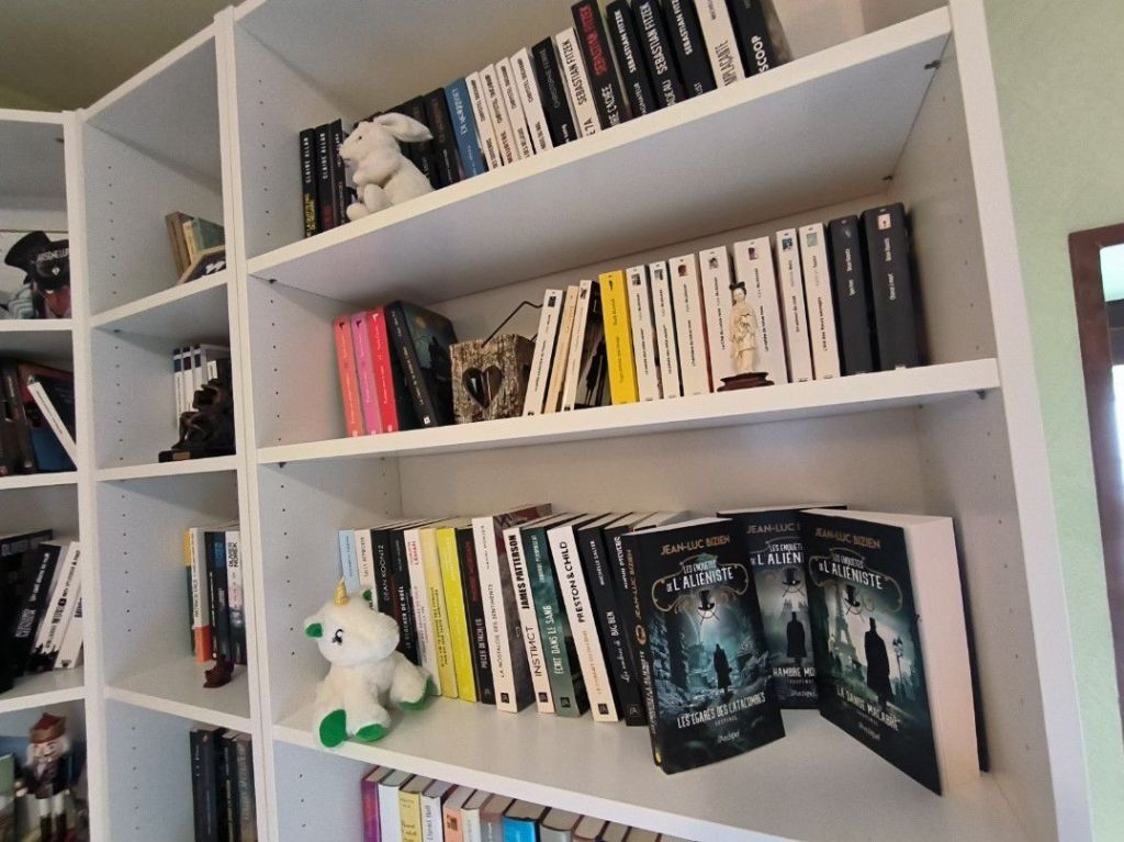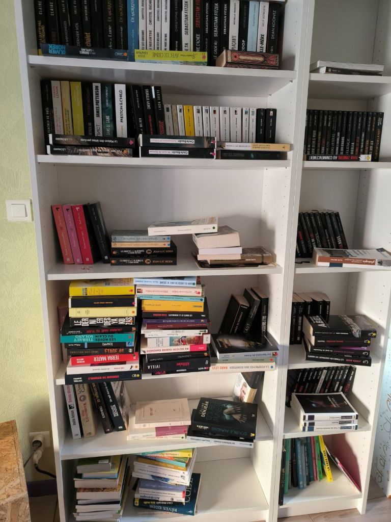 Jusqu’ici, mes livres étaient dispersés un peu partout dans la maison : empilés sur des tables, rangés dans des placards, parfois même dans des cartons. Un véritable chaos ! Cette nouvelle bibliothèque sera donc l’occasion d’une organisation plus logique. Par auteur, par genre, par couleur ? Le choix s’annonce difficile, mais quel bonheur de voir enfin mes trésors réunis dans un seul et même espace. Retrouvez ici mon article concernant les différents types de classement.