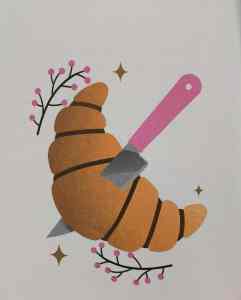 Le croissant poignardé, clin d’œil malicieusement criminel à l’univers de la boulangerie, annonce la couleur : ici, le meurtre se fait presque gourmand. La tour Eiffel enfermée dans une boule à neige renforce cette impression de Paris idéalisé, féerique, presque irréel, comme figé dans un décor de carte postale hivernale.