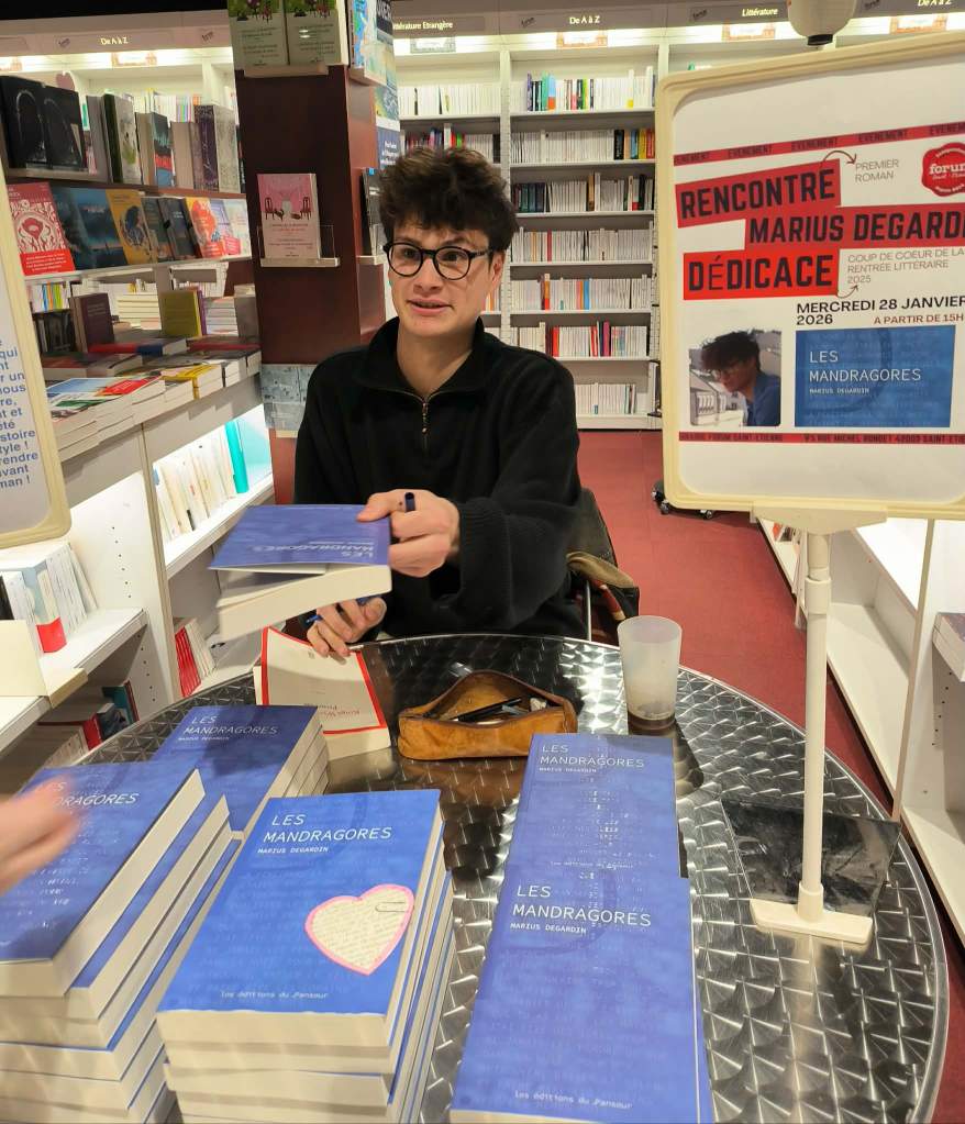 Coucou la Book Team, mercredi, je suis allée à la librairie Forum de Saint-Étienne pour la dédicace de Marius Degardin, l’auteur de « Les Mandragores ». Je vous raconte ?